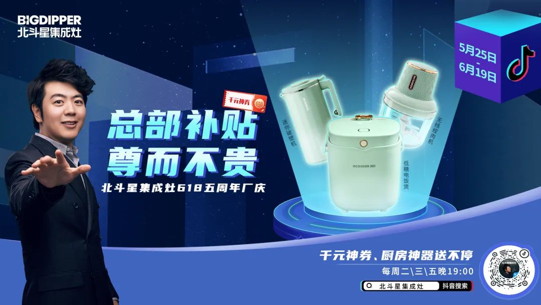 5月25日-6月19日,北斗星集成灶618五周年廠慶,正在進(jìn)行中!每周2、3、5 晚19:00,來【北斗星集成灶】抖音直播間,千元神券、廚房神器送不停!入手北斗星,感受不一樣的廚房體驗(yàn)!