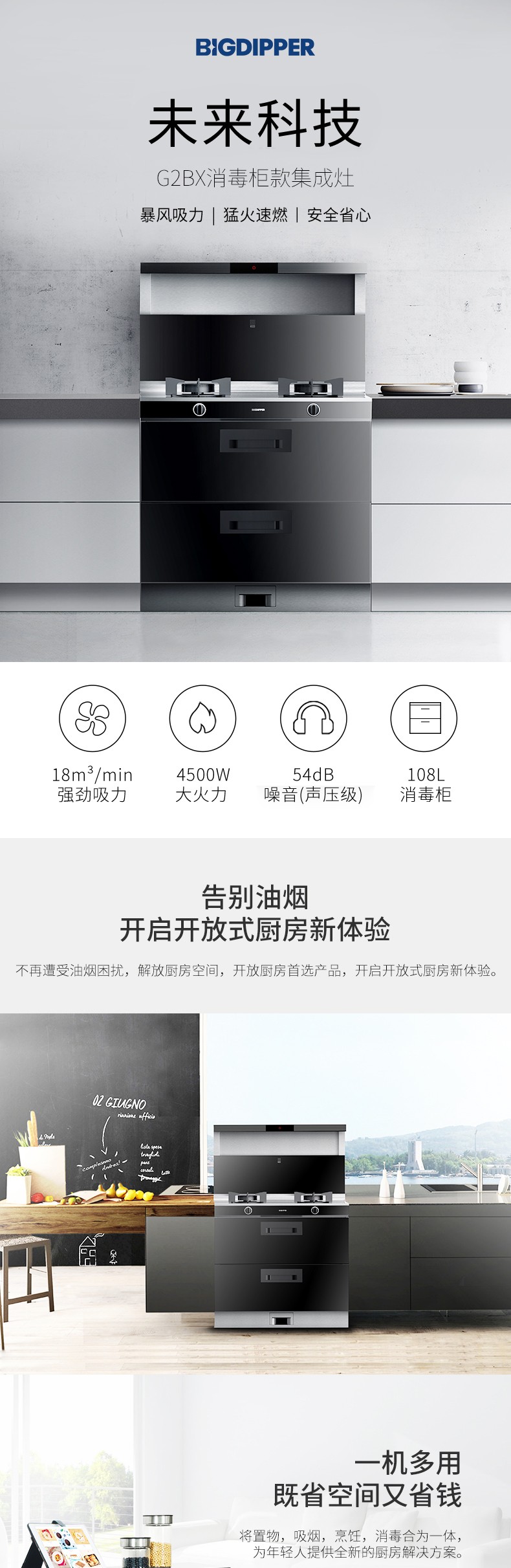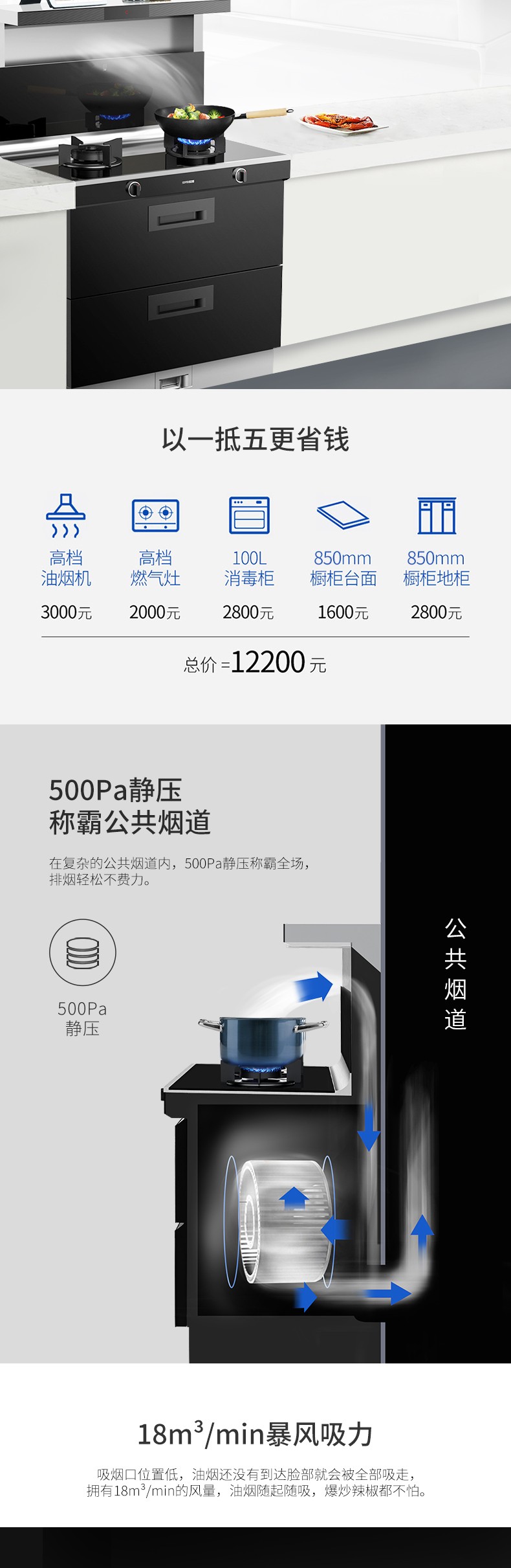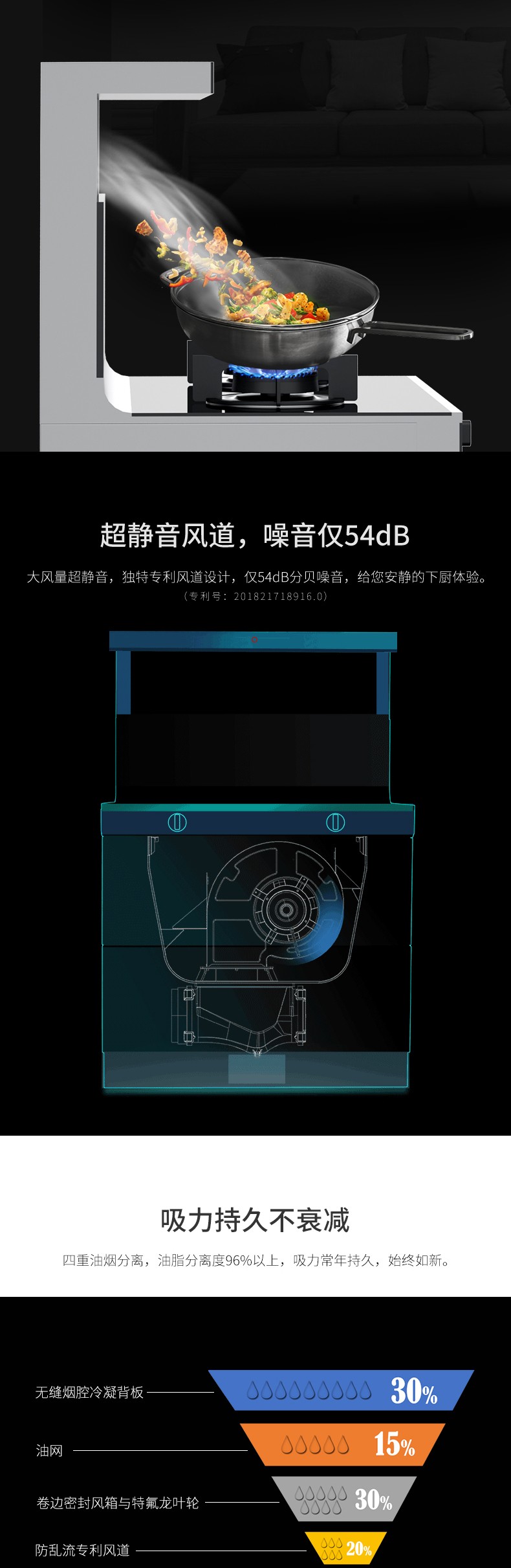 煙機迸發(fā)每分鐘18立方米大吸力。